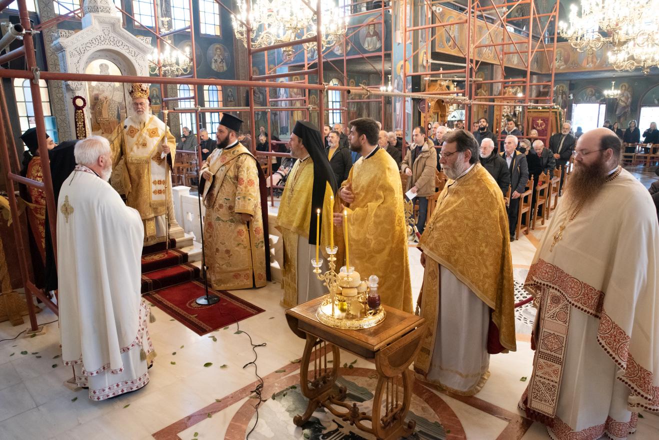 Στην πανηγυρική Θεία Λειτουργία προεξήρχε ο Σεβασμιώτατος Μητροπολίτης Ιλίου, Αχαρνών και Πετρουπόλεως κ. Αθηναγόρας, συμπαραστατούμενος από τους εφημέριους του Ναού και πλειάδα ιερέων της Μητρόπολης Ιλίου.