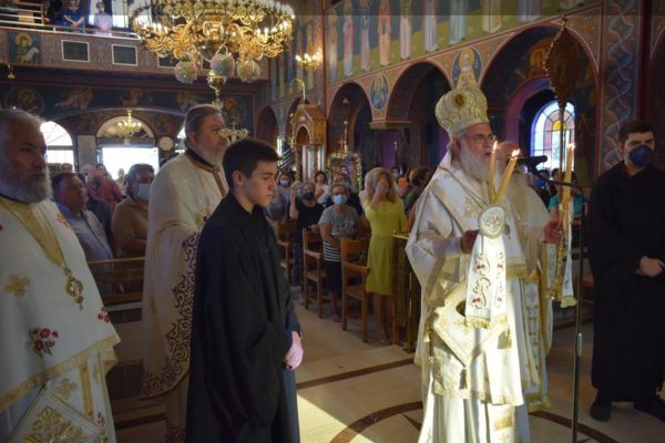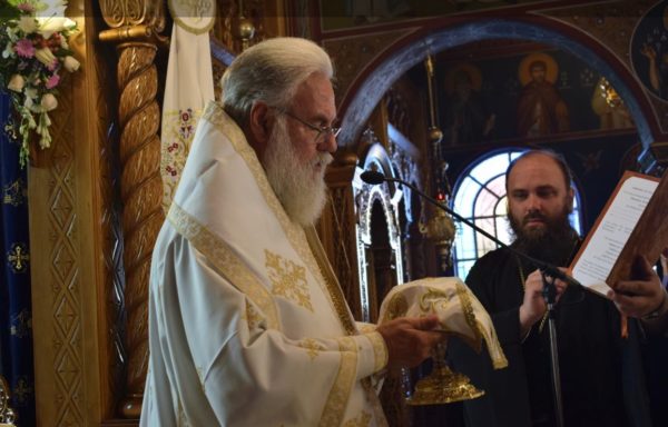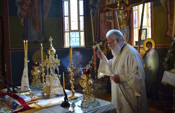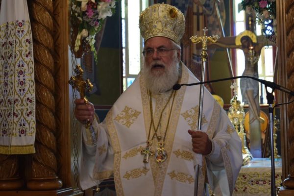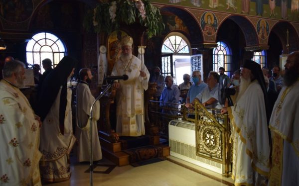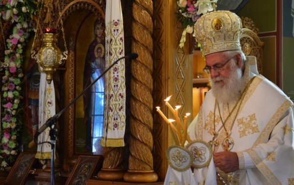 Μετά την ανάγνωση του Ευαγγελίου ο Σεβασμιώτατος απευθύνθηκε στο πολυπληθές εκκλησίασμα και αναφέρθηκε στην έννοια της αγιότητας και στη θέση των Αγίων, ερμηνεύοντας το στίχο από την Α’ προς Κορινθίους επιστολή του Αποστόλου Παύλου «εὐχαριστῶ τῷ Θεῷ μου πάντοτε περὶ ὑμῶν ἐπὶ τῇ χάριτι τοῦ Θεοῦ τῇ δοθείσῃ ὑμῖν ἐν Χριστῷ Ἰησοῦ … καθὼς τὸ μαρτύριον τοῦ Χριστοῦ ἐβεβαιώθη ἐν ὑμῖν» (1, 4-6).  Η στερέωση της μαρτυρίας του μηνύματος του Χριστού μεταξύ των πιστών δημιουργεί τους Αγίους.