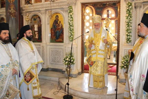 Στον Όρθρο της εορτής χοροστάτησε ο Σεβασμιώτατος Μητροπολίτης Δημητριάδος και Αλμυρού κ. Ιγνάτιος, ενώ στη Θεία Λειτουργία προεξήρχε ο εορτάζων Μητροπολίτης συλλειτουργών μετά των Σεβασμιωτάτων Μητροπολιτών Δημητριάδος και Αλμυρού κ. Ιγνατίου, Μεσσηνίας, Μεθώνης, Κορώνης, Πύλου και Ανδρούσης κ. Χρυσοστόμου, Κηφισίας, Αμαρουσίου, Ωρωπού και Μαραθώνος κ. Κυρίλλου, Ν. Ιωνίας, Ν. Φιλαδελφείας, Ηρακλείου και Χαλκηδόνος κ. Γαβριήλ, Γλυφάδας, Βάρης, Βούλας, Βουλιαγμένης και Ελληνικού κ. Αντωνίου, Θεσσαλιώτιδος και Φαναριοφερσάλων κ. Τιμοθέου, Σταγών και Μετεώρων κ. Θεοκλήτου και των Θεοφιλεστάτων Επισκόπων Χριστιανουπόλεως κ. Προκοπίου και Ευρίπου κ. Χρυσοστόμου.