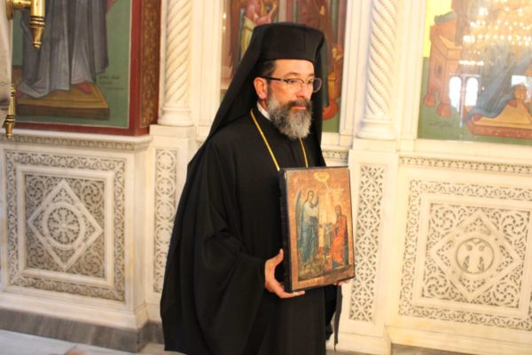 Ο Σεβασμιώτατος στο τέλος της Θείας Λειτουργίας διένειμε το αντίδωρο και εικόνα του αγίου Αθηναγόρου στους πιστούς και δέχθηκε τις ολόθερμες ευχές τους.