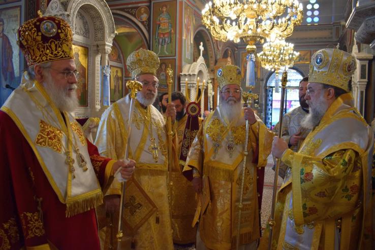 Την κυριώνυμο ημέρα, στην ακολουθία του Όρθρου χοροστάτησε ο Σεβασμιώτατος Μητροπολίτης Κηφισίας, Αμαρουσίου και Ωρωπού κ. Κύριλλος, ενώ στην πολυαρχιερατική Θεία Λειτουργία προεξήρχε ο Σεβασμιώτατος Μητροπολίτης Σερβίων και Κοζάνης κ. Παύλος, συλλειτουργούντων των Σεβασμιωτατών Μητροπολιτών Ηλιουπόλεως Αιγύπτου κ. Θεοδώρου, Κηφισίας, Αμαρουσίου και Ωρωπού κ. Κυρίλλου και του οικείου ποιμενάρχου κ. Αθηναγόρου. Το θείο λόγο κήρυξε ο Σεβασμιώτατος Μητροπολίτης Σερβίων κ. Παύλος ο οποίος αναφέρθηκε στη σημασία της εκκλησίας και της αγιότητας στις μέρες μας.