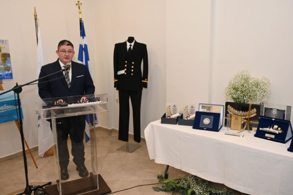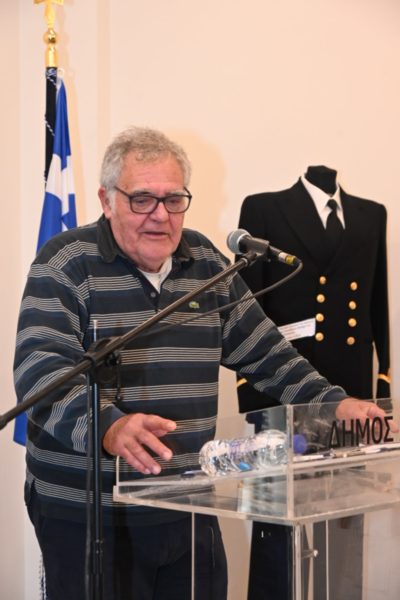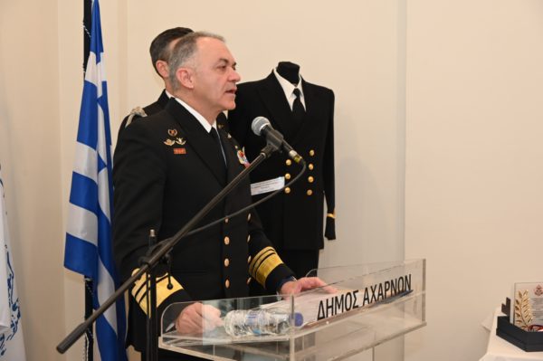 Ο πρόεδρος της Ιστορικής & Λαογραφικής Εταιρείας Αχαρνών, Γεώργιος Φυτάς, αφού τίμησε τον Αρχηγό ΓΕΝ ανακηρύσσοντάς τον μέλος της τον ευχαρίστησε θερμά για τη δωρεά της στολής του ως σημαιοφόρος στο μουσείο, ενώ παράλληλα, στην εκδήλωση τιμήθηκε και ο συνδημότης μας Γεώργιος Γκρίτσης για το επίτευγμά του να πραγματοποιήσει τον περίπλου της Γης με ξύλινο ιστιοπλοϊκό πλοίο δύο φορές.