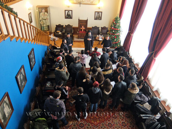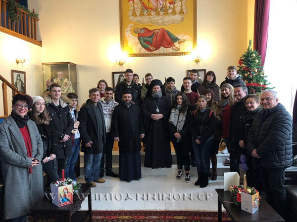 Τη Δευτέρα 23 Δεκεμβρίου 2019, ο Σεβασμιώτατος Μητροπολίτης Ιωαννίνων κ. κ. Μάξιμος υποδέχτηκε στο Μητροπολιτικό Μέγαρο τα παιδιά από Εκκλησιαστικό Λύκειο Βελλάς και έπειτα από το Μουσικό Γυμνάσιο – Λύκειο Ιωαννίνων και άκουσε τα κάλαντα των Χριστουγέννων, της Πρωτοχρονιάς και των Φώτων.