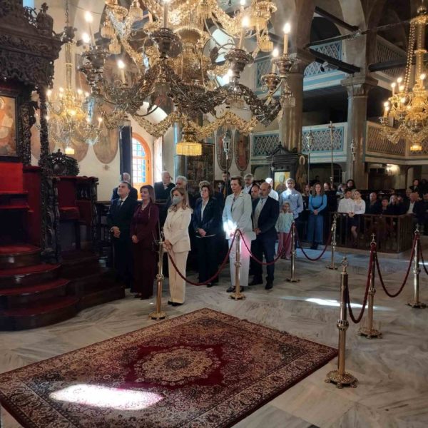 Μετά το πέρας της Θείας Λειτουργίας τελέστηκε υπό του Σεβασμιωτάτου η Επίσημη Δοξολογία στην οποία παρευρέθησαν οι τοπικοί Άρχοντες και οι Αρχές του τόπου καθώς και οι σημαιοφόροι των Σχολείων της πόλεως.
