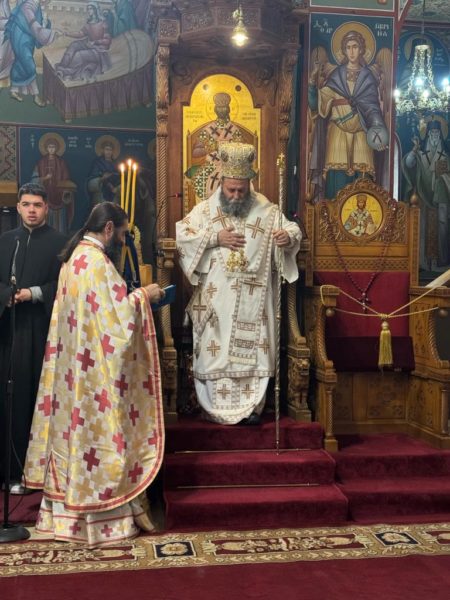 Του Όρθρου χοροστάτησε και προεξήρχε της Θείας Λειτουργίας ο Σεβασμιώτατος Μητροπολίτης Ιωαννίνων κ. Μάξιμος πλαισιούμενος από τον εφημέριο του προσκυνήματος.