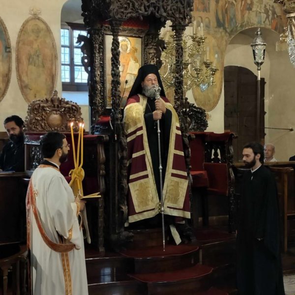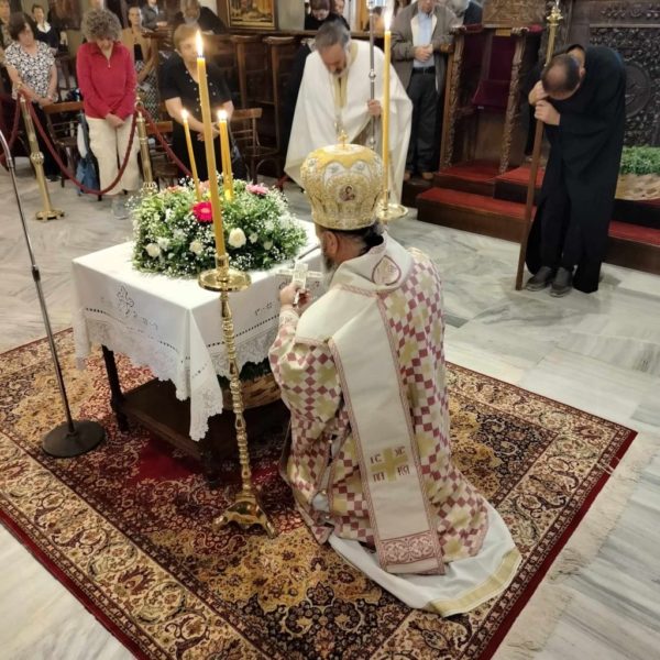 Μετά το ασματικον της Δοξολογίας τελέστηκε κατά το τυπικό η Τελετή της Υψώσεως του Τιμίου Σταυρού.
