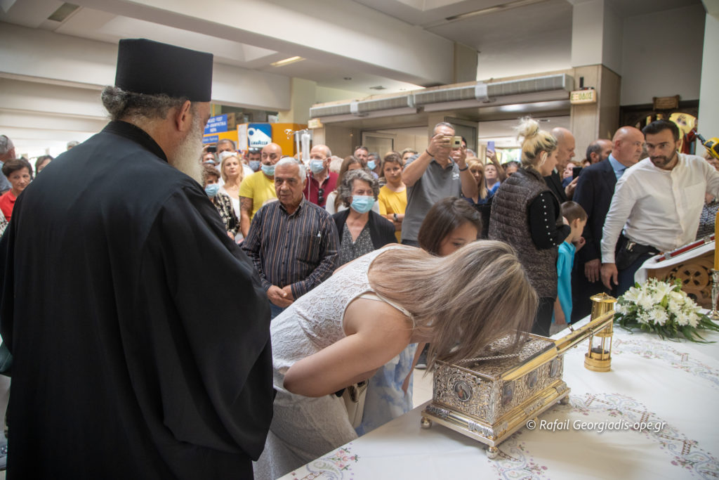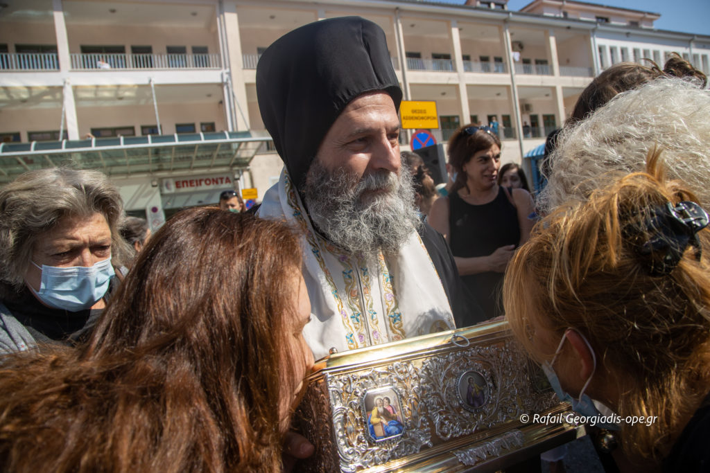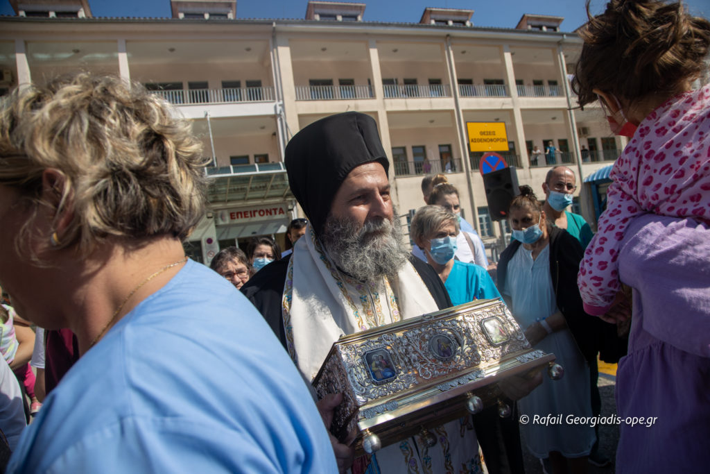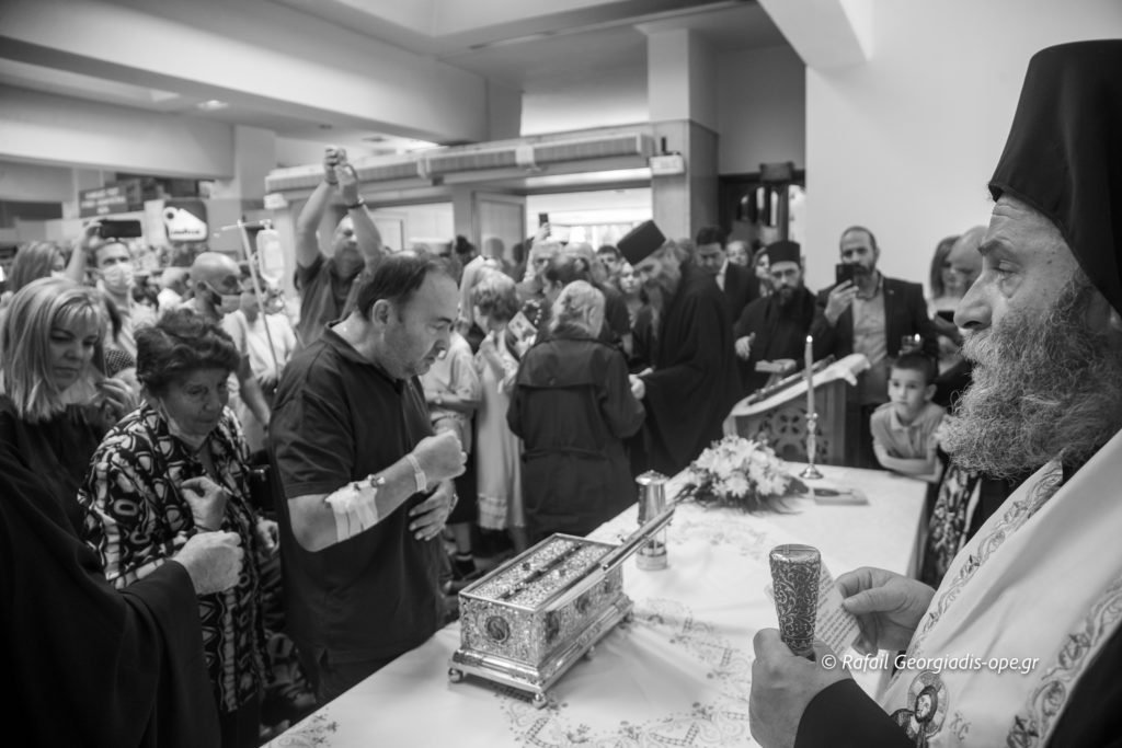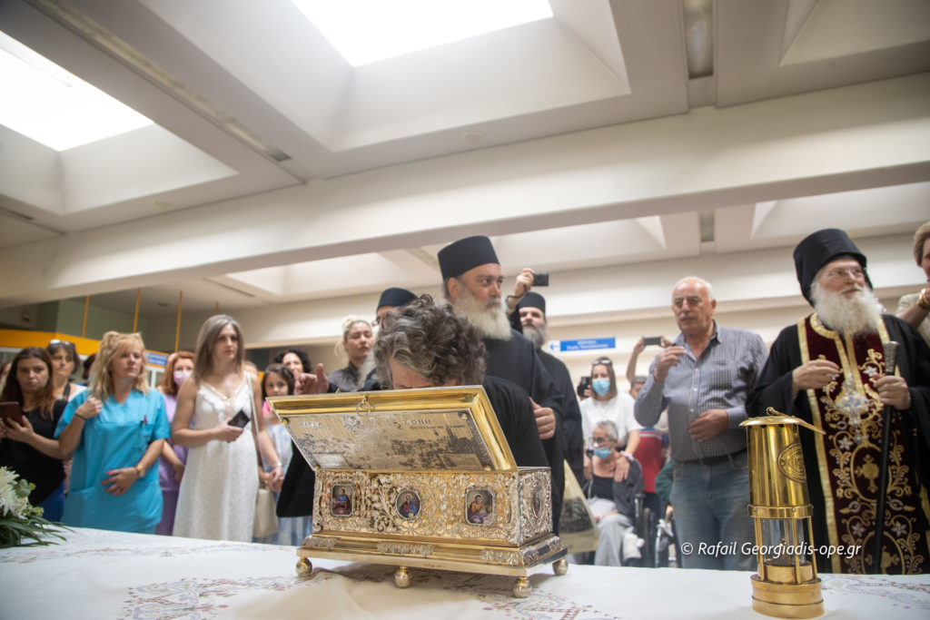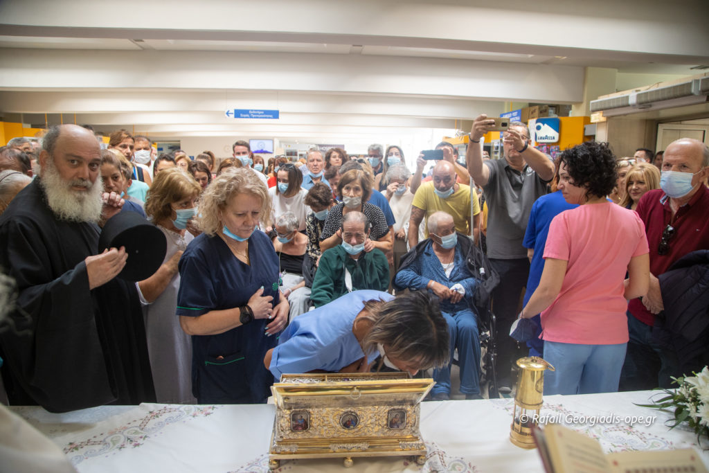 Στο Νοσοκομείο κόσμος με ορούς και δάκρυα στα μάτια έτρεχαν να λάβουν την ευλογία και τη χάρη της Παναγίας εναποθέτοντας πάνω σε Αυτήν τους πόνους τους.