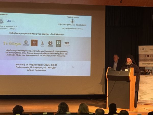 Την Κυριακή 1 Φεβρουαρίου 2026 και ώρα 18:30, στον Πολιτιστικό Πολυχώρο «Δημήτρης Χατζής» του Δήμου Ιωαννιτών, πραγματοποιήθηκε η εκδήλωση παρουσίασης της πράξης «Το Εύλογον», με θέμα: «Πρότυπη Διεπιστημονική Ανάπτυξη και Μεταφορά Τεχνογνωσίας και Συνεργασίας στην Αποκατάσταση Εμβληματικών Μνημείων και Ανάδειξη Αξιών του Χριστιανισμού σε Διάλογο με την Κοινωνία».