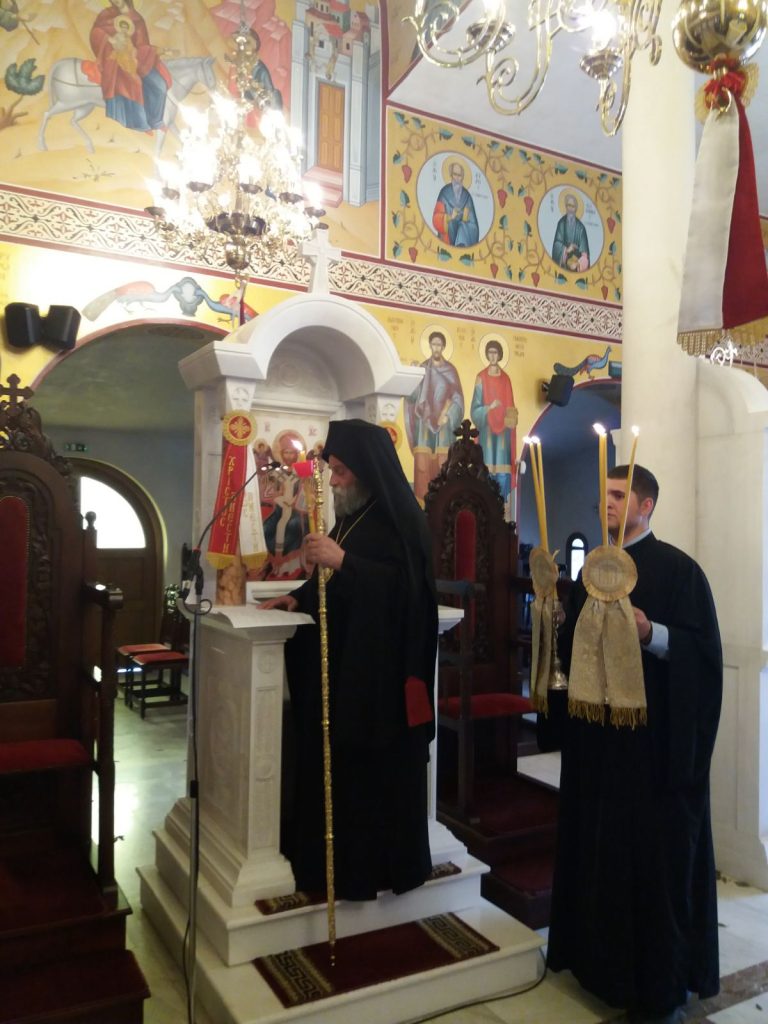Στο τέλος της ακολουθίας, ο Σεβασμιώτατος απηύθυνε σύντομο λόγο προς το εκκλησίασμα, αναφερόμενος στο πρόσωπο της Υπεραγίας Θεοτόκου, με αφορμή την εορτή της Ζωοδόχου Πηγής, η οποία εορτάστηκε το πρωί της ιδίας ημέρας, τονίζοντας την διαρκή παρουσία και προστασία της Παναγίας στη ζωή των πιστών.