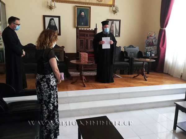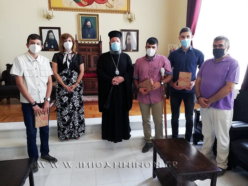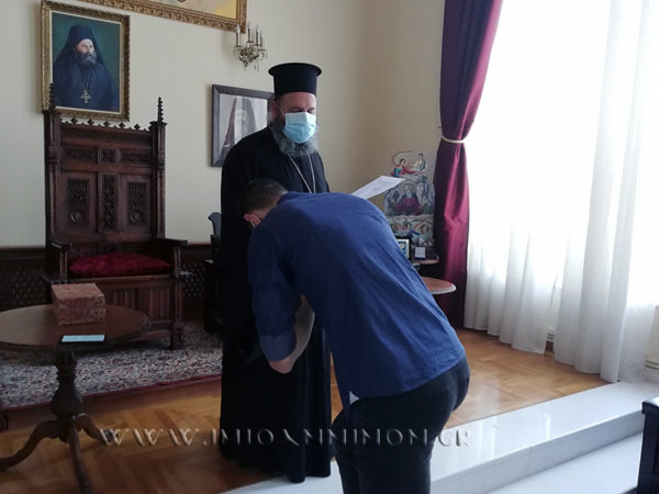 «Σας καλωσορίζουμε κ. Διευθύντρια και αγαπητά παιδιά στην Ιερά Μητρόπολη και με αισθήματα ευθύνης σάς απευθύνουμε τον έπαινο για τις επιδόσεις στα γράμματα, και μάλιστα στα εκκλησιαστικά γράμματα, εφόσον είστε μαθητές που πρώτευσαν σε ένα Εκκλησιαστικό Λύκειο, αυτό της Βελλάς.