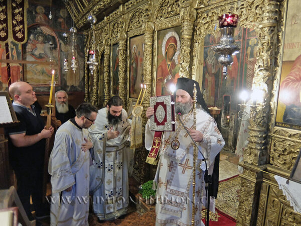 Τό ἑσπέρας, χοροστάτησε στήν ἀκολουθία τοῦ Παρακλητικοῦ Κανόνος στόν Ἱερό Ναό Εἰσοδίων τῆς Θεοτόκου Μελιᾶς καί ἔπειτα στόν Ἱερό Ναό Κοίμησης τῆς Θεοτόκου Κοπάνης.