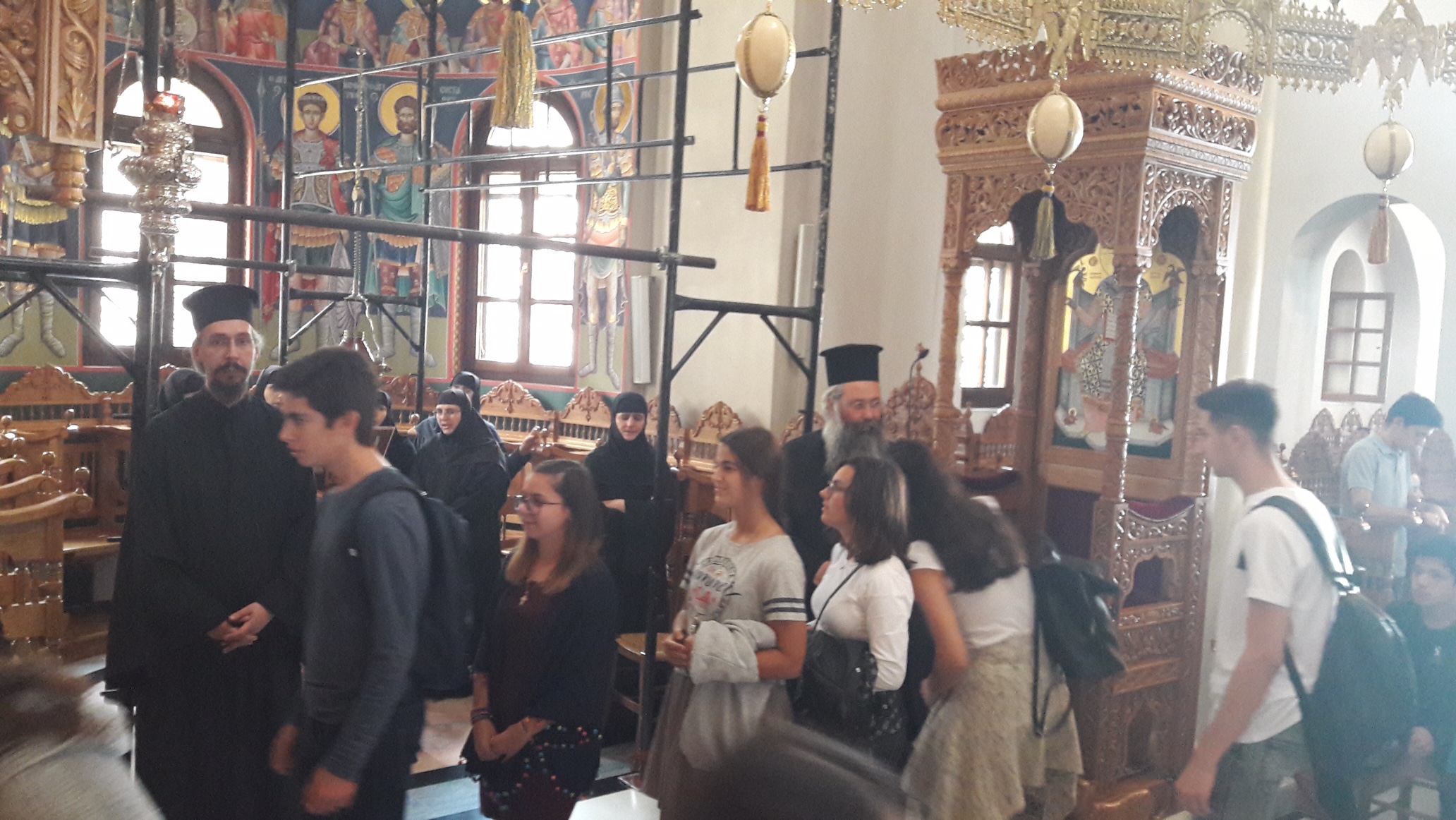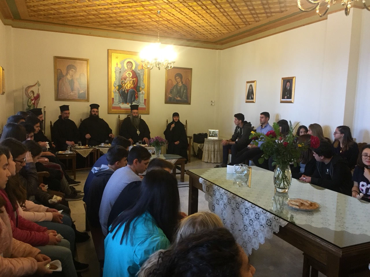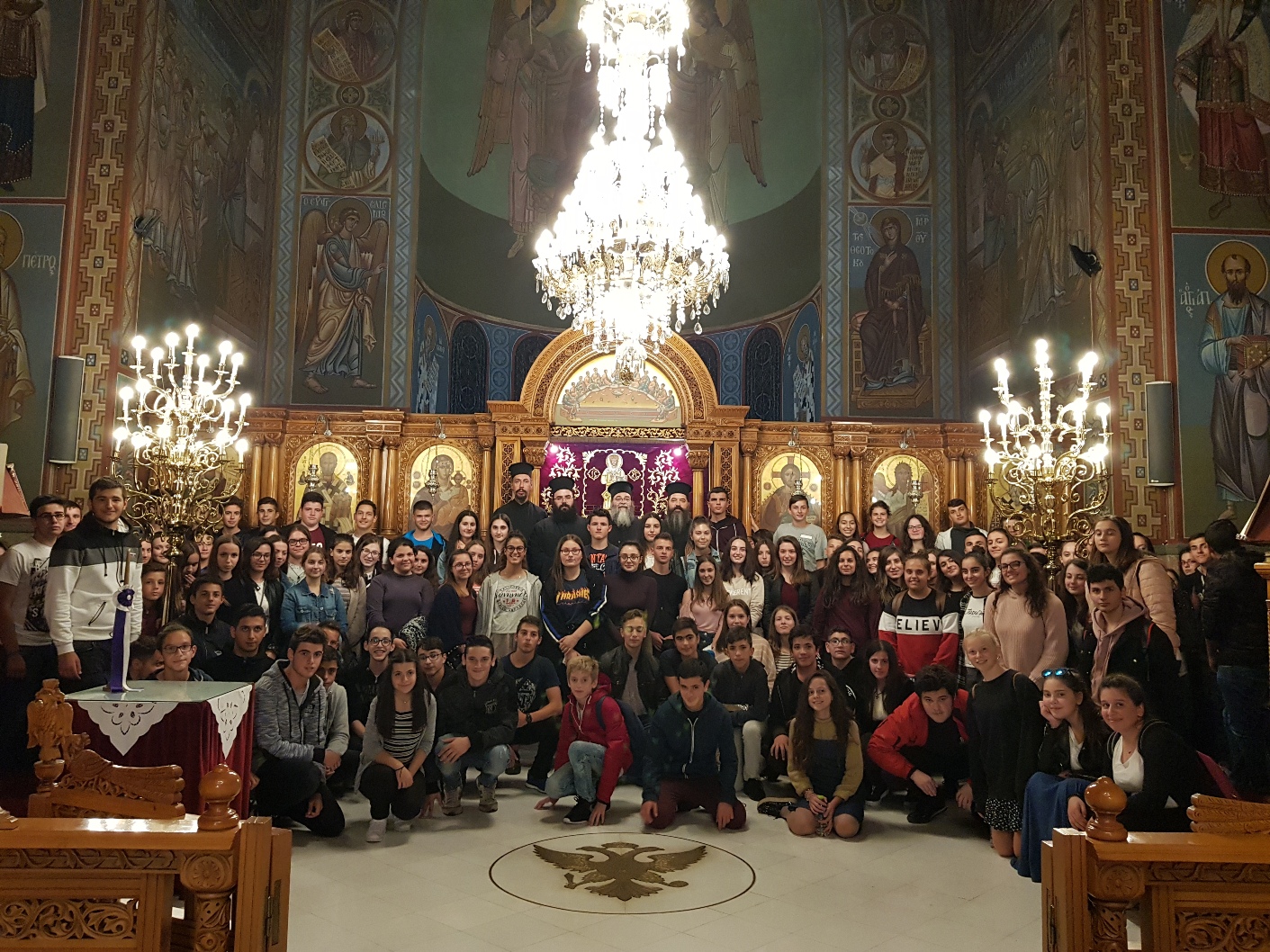 Αρχικά οι μαθητές πραγματοποίησαν προσκύνημα στην Ιερά Μονή Ταξιαρχών Πηλίου, όπου έτυχαν θερμής φιλοξενίας από την Καθηγουμένη Νικοδήμη μοναχή η οποία μίλησε στα παιδιά ενώ οι αδελφές έψαλαν ύμνους και χριστιανικά τραγούδια. Τα παιδιά με τη σειρά τους αφιέρωσαν τραγούδια εκφράζοντας την ευγνωμοσύνη τους.