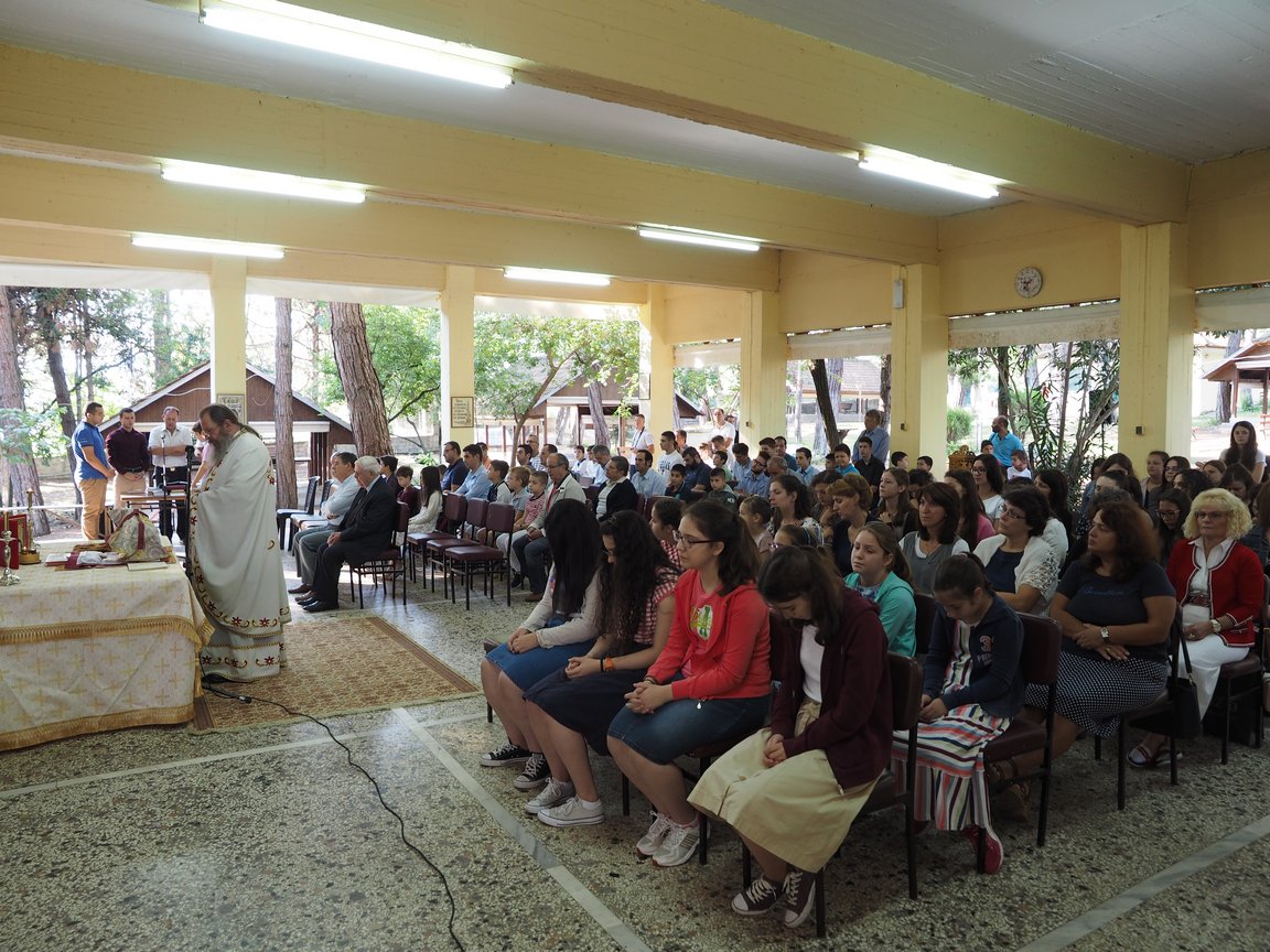 Το πρωί τελέστηκε μέσα στον χώρο της κατασκήνωσης από τον υπεύθυνο πρωτοπρεσβύτερο π. Αθανάσιο Μαρινόπουλο η Θεία Λειτουργία. Έψαλαν γονείς-παλιοί κατασκηνωτές από την Κατερίνη και από άλλες πόλεις της Πατρίδας μας.