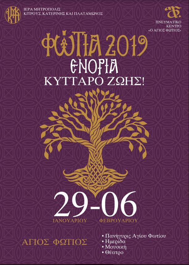 Τα «Φώτια», ανοίγουν την Τρίτη 29 Ιανουαρίου την αυλαία τους στο Πνευματικό Κέντρο της Ιεράς Μητροπόλεως Κίτρους, Κατερίνης και Πλαταμώνος «Ο Άγιος Φώτιος», για να παρουσιάσουν εκδηλώσεις υψηλού πνευματικού και πολιτιστικού περιεχομένου, τιμώντας έμπρακτα τις βαθύτερες αξίες της Εκκλησίας και του πολιτισμού.