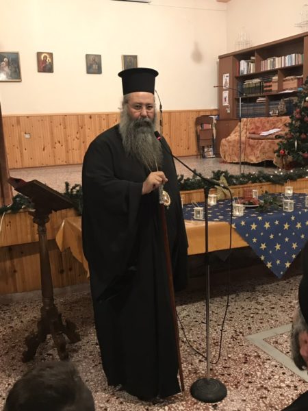 Στην προσλαλιά του ο Σεβασμιώτατος απευθύνθηκε προς το πυκνό ακροατήριο και έδωσε εόρτιες χριστουγεννιάτικες ευχές σε όλους μοιράζοντας ως ευλογία εικόνες της Γεννήσεως του Χριστού.