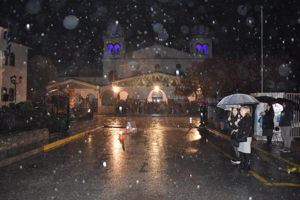 Το βράδυ της Κυριακή 24 Νοεμβρίου, μετά τον Πανηγυρικό Αρχιερατικό Εσπερινό της Πολιούχου Αγίας Αικατερίνης, μπροστά στο Μητροπολιτικό Μέγαρο Κατερίνης και παρά τις άσχημες καιρικές συνθήκες, πραγματοποιήθηκε η φωταγώγηση του φυσικού κέδρου που βρίσκεται στην αυλή του Μητροπολιτικού Μεγάρου σε μια λιτή τελετή και σύντομη.