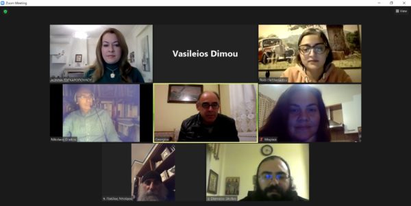Στη τηλεδιάσκεψη της καλλιτεχνικής επιτροπής συμμετείχαν ο Πανοσιολογιώτατος Αρχιμανδρίτης π. Παύλος Ντούρος, Διευθυντής του Πνευματικού Κέντρου «Ο Άγιος Φώτιος», ο Αρχιμανδρίτης π. Διονύσιος Γκόλιας, υπεύθυνος του Γραφείου Νεότητας, η κα Αθηνά Τσιγκαροπούλου, Δρ. Βυζαντινής Αρχαιολογίας, η κα Ροδή Ελευθεριάδου-Μελετλίδου, εκπαιδευτικός ειδικής αγωγής-σχολική ψυχολόγος, η κα Μαρίκα Φωτοπούλου, μουσικός-ηθοποιός, ο κ. Νίκος Γραίκος, φιλόλογος και ιστορικός τέχνης, ο κ. Γιώργος Καραδήμος, θεολόγος και ο κ. Βασίλειος Δήμου, υπεύθυνος Τύπου και Δημοσίων Σχέσεων της Ιεράς Μητροπόλεως.