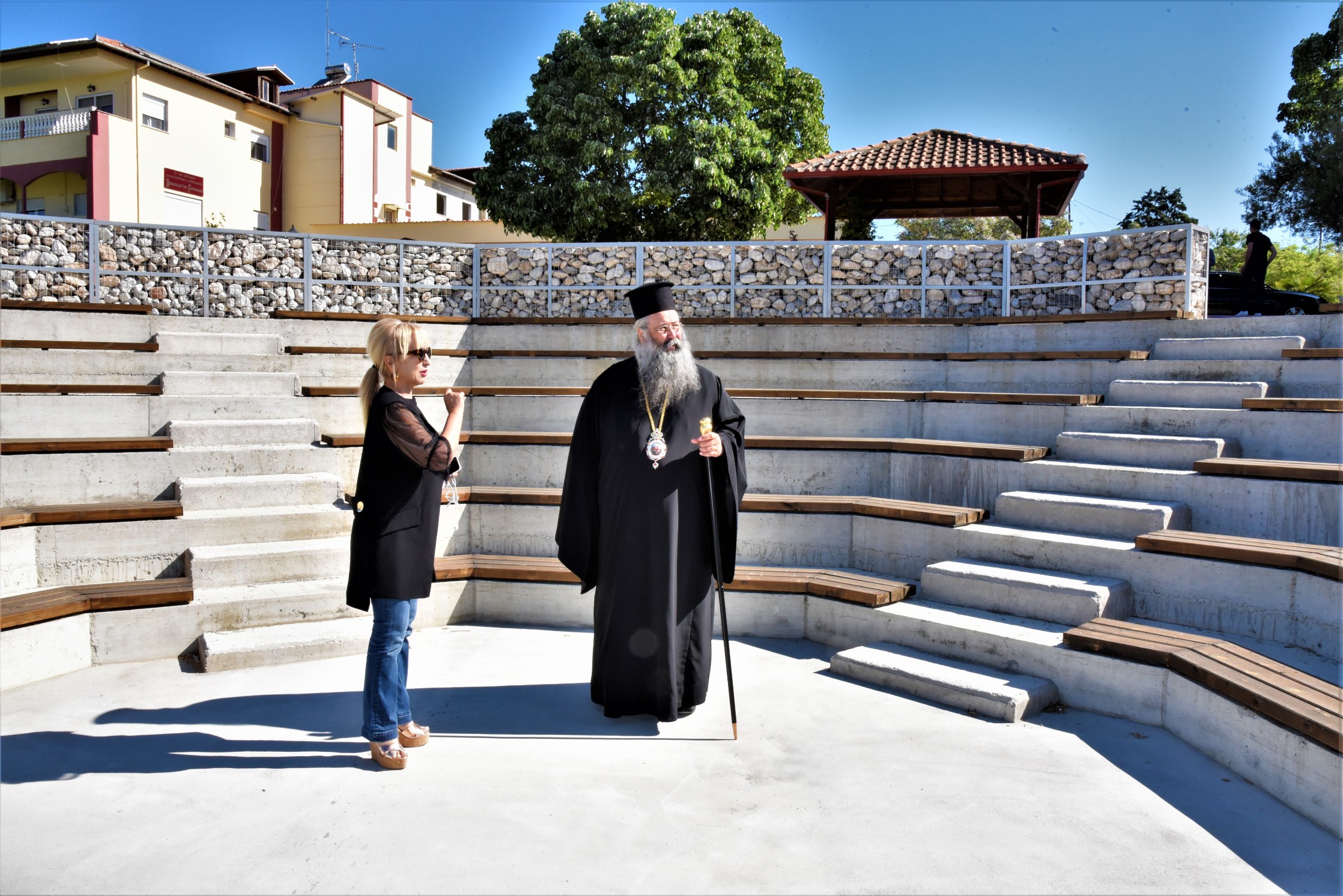 Τις εργασίες ολοκλήρωσης του νέου υπαίθριου αμφιθεάτρου και των διαδρομών περιπάτου που κοσμούν τον περιβάλλοντα χώρο των Εκκλησιαστικών Ιδρυμάτων της Ιεράς Μητροπόλεως Κίτρους, Κατερίνης και Πλαταμώνος στον Σβορώνο Πιερίας επέβλεψαν το πρωί της Τετάρτης 13 Μαΐου ο Σεβασμιώτατος Μητροπολίτης κ. Γεώργιος και η Αντιπεριφερειάρχης Πιερίας κα Σοφία Μαυρίδου.