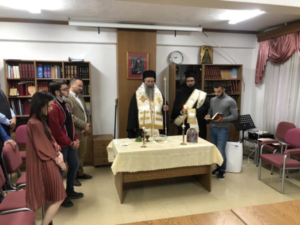 Ο αγιασμός τελέστηκε από τον Σεβασμιώτατο Μητροπολίτη κ. Γεώργιο στην αίθουσα της Βαρναβείου Βιβλιοθήκης. Παρέστησαν ο Διευθυντής, καθηγητές και μαθητές της Σχολής, καθώς και γονείς.