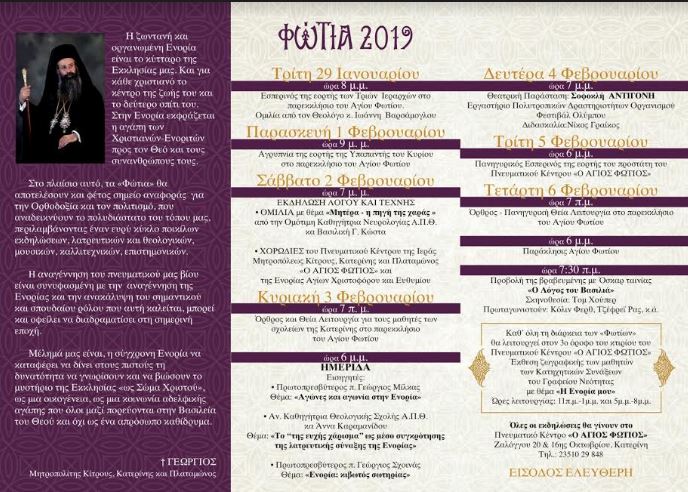 Οι εκδηλώσεις συνεχίζονται με βάση το αναλυτικό πρόγραμμα που επισυνάπτεται. Όλες πραγματοποιούνται στο Πνευματικό Κέντρο «Ο Άγιος Φώτιος».