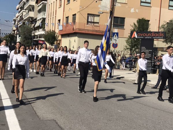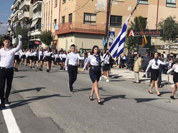 Στη συνέχεια πραγματοποιήθηκε κατάθεση στεφάνων στο Μνημείο της Πλατείας Ελευθερίας και η καθιερωμένη παρέλαση Σχολείων και Πολιτιστικών Συλλόγων της πόλης. Στην παρέλαση συμμετείχε η Φιλαρμονική του Δήμου Καλαμαριάς υπό τη διεύθυνση του χοράρχη Γιάννη Κούκα.