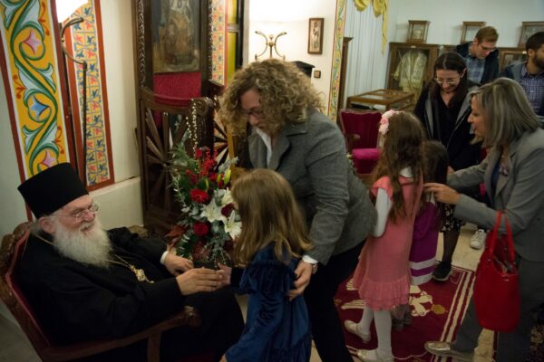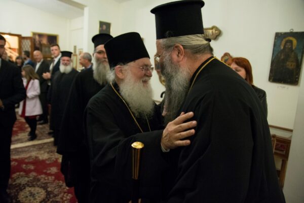 Ο Γέροντας και η συνοδεία του ευχήθηκαν στον εορτάζοντα Μητροπολίτη, ενώ επισκέφθηκαν και έλαβαν την ευλογία του ασθενούντος Προκατόχου του Γέροντος Μητροπολίτου κ. Αγαθονίκου.