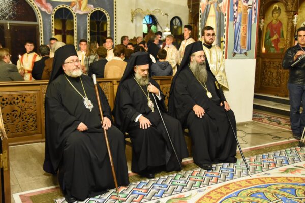 Συγκεκριμένα, το Σάββατο 2 Νοεμβρίου, παραμονή της εορτής, τελέστηκε ο Αρχιερατικός Εσπερινός με αρτοκλασία, χοροστατούντος του Θεοφιλεστάτου Επισκόπου Αρούσας και Κεντρικής Τανζανίας κ. Αγαθονίκου, ενώ συμπροσευχήθηκαν ο Σεβασμιώτατος Μητροπολίτης Θεσσαλιώτιδος και Φαναριοφερσάλων κ. Τιμόθεος, ο Θεοφιλέστατος Επίσκοπος Αμορίου κ. Νικηφόρος και ο εορτάζων Ποιμενάρχης κ. Γεώργιος.
