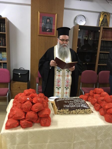 Ο Πρωτοσύγκελλος της Ιεράς Μητροπόλεως Πανοσιολογιώτατος Αρχιμανδρίτης π. Βαρνάβας Λεοντιάδης μετέφερε τις ευλογίες του Σεβασμιωτάτου Μητροπολίτη κ. Γεωργίου και συνάμα προέβη στην κοπή της παραδοσιακής βασιλόπιτας.