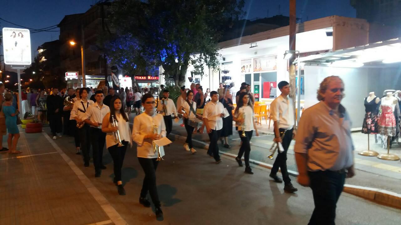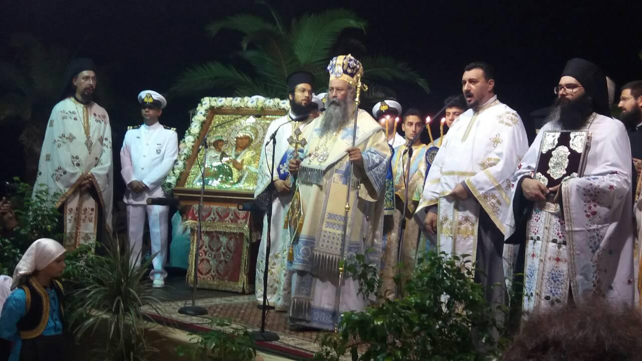 Το βράδυ της Τρίτης 13 Αυγούστου στην Παραλία Κατερίνης πραγματοποιήθηκε η καθιερωμένη λιτανεία της εικόνας Παναγίας της Τριχερούσας, αντίγραφο από την Ιερά Μονή Χιλανδαρίου Αγίου Ορους.