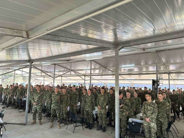 Τέλος, μοίρασε σε όλους τους Ευέλπιδες έντυπο υλικό και ευχήθηκε καλή επιτυχία στις σπουδές και στη σταδιοδρομία τους για το καλό της Πατρίδας μας.