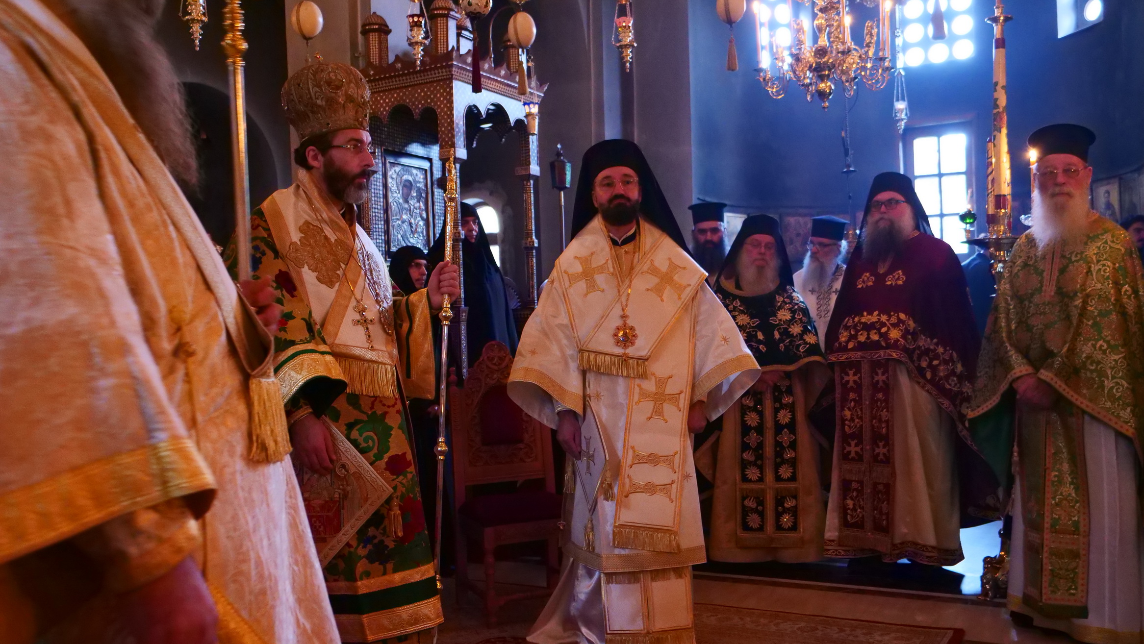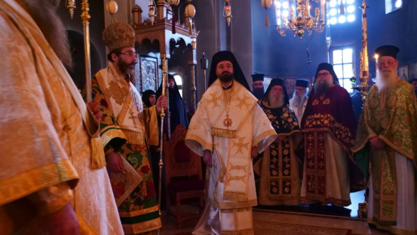 Ακολούθησε ο Αρχιερατικός Εσπερινός χοροστατούντος του Σεβασμιωτάτου Μητροπολίτου Σαράντα Εκκλησιών κ. Ανδρέα, εκπροσώπου του Παναγιωτάτου Οικουμενικού Πατριάρχου. Συμπροσευχήθηκαν ο Σεβασμιώτατος Μητροπολίτης Τριπόλεως και Λιβύης κ. Θεοφύλακτος, ο Θεοφιλέστατος Επίσκοπος Νειλουπόλεως κ. Νικόδημος και ο οικείος Μητροπολίτης κ. Γεώργιος.