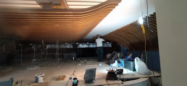 Ήδη ολοκληρώθηκαν οι εργασίες στις εξωτερικές όψεις του κτιρίου, ενώ αυτήν την περίοδο λαμβάνουν χώρα κατασκευαστικές εργασίες στο εσωτερικό του κτιρίου.