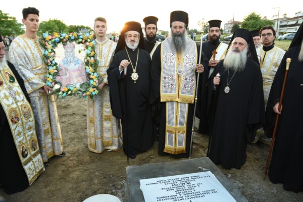 Το απόγευμα της ίδιας ημέρας, στην περιοχή του πρώην Καπνικού Σταθμού Κατερίνης, έλαβε χώρα η θεμελίωση ενός νέου Ιερού Ναού, ο οποίος θα τιμάται στον Άγιο Μελέτιο Επίσκοπο Κίτρους.