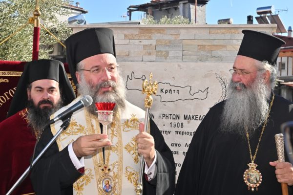 Τέλος, ο Σεβασμιώτατος Μητροπολίτης Ρεθύμνης και Αυλοποτάμου κ. Πρόδρομος τέλεσε Τρισάγιο στο Μνημείο των Κρητών Μακεδονομάχων, που βρίσκεται στο προαύλιο του Ιερού Ναού.