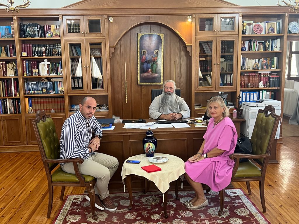 Οι εκδηλώσεις που θα διοργανώσουν η Ιερά Μητρόπολη Κίτρους, Κατερίνης και Πλαταμώνος και ο Δήμος Κατερίνης στα φετινά ΑΙΚΑΤΕΡΙΝΕΙΑ καθώς και με αφορμή τη συμπλήρωση 110 ετών από την απελευθέρωση της πόλης, βρέθηκαν στο επίκεντρο της συνάντησης του Σεβασμιωτάτου Μητροπολίτη Κίτρους, Κατερίνης και Πλαταμώνος κ. Γεωργίου με τον Πρόεδρο του Οργανισμού Πολιτισμού, Παιδείας, Αθλητισμού και Πρόνοιας (Ο.Π.Π.Α.Π.) του Δήμου Κατερίνης κ. Γιάννη Νταντάμη και την Αντιπρόεδρο του Ο.Π.Π.Α.Π. κα Μιράντα Παππά.