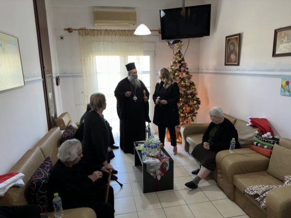 Κατ’ αγαθή συγκυρία, κατά την επίσκεψη στο Εκκλησιαστικό Γηροκομείου, συναντήθηκε με τη Διευθύντρια, Καθηγητές και Μαθητές του 4ου Γυμνασίου Κατερίνης, που επισκέφθηκαν τις φιλοξενούμενες γερόντισσες για να ψάλουν τα χριστουγεννιάτικα κάλαντα, με την παρουσία και του Διευθυντή Δευτεροβάθμιας Εκπαίδευσης Πιερίας κ. Γεωργίου Μακρή.