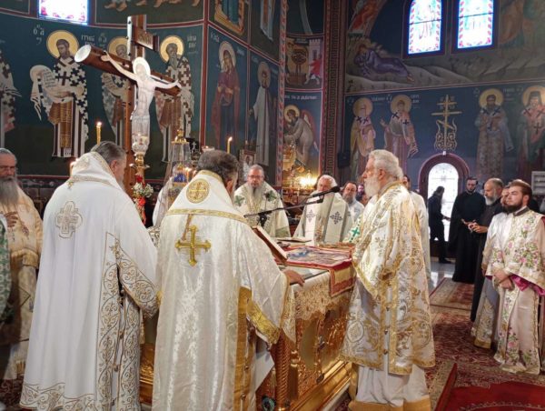 Ιερούργησαν ή συμπροσευχήθηκαν οι Σεβασμιώτατοι και Θεοφιλέστατοι Αρχιερείς Μιλήτου κ. Απόστολος, Γέρων Καισαρείας κ. Θεοφύλακτος, Ξάνθης και Περιθεωρίου κ. Παντελεήμων, Σιδηροκάστου κ. Μακάριος, Χαλκίδος, Ιστιαίας και Βορείων Σποράδων κ. Χρυσόστομος, Εδέσσης, Πέλλης και Αλμωπίας κ. Ιωήλ, Σερβίων και Κοζάνης κ. Παύλος, Μεσογαίας και Λαυρεωτικής κ. Νικόλαος, Θηβών, Λεβαδείας και Αυλίδος κ. Γεώργιος, Γρεβενών κ. Δαβίδ, Νέας Κρήνης και Καλαμαριάς κ. Ιουστίνος, Λαρίσης και Τυρνάβου κ. Ιερώνυμος, Αρούσας και Κεντρικής Τανζανίας κ. Αγαθόνικος, Σκοπέλου κ. Νικόδημος, Σαλώνων κ. Ιγνάτιος και ο οικείος Ποιμενάρχης κ. Γεώργιος.