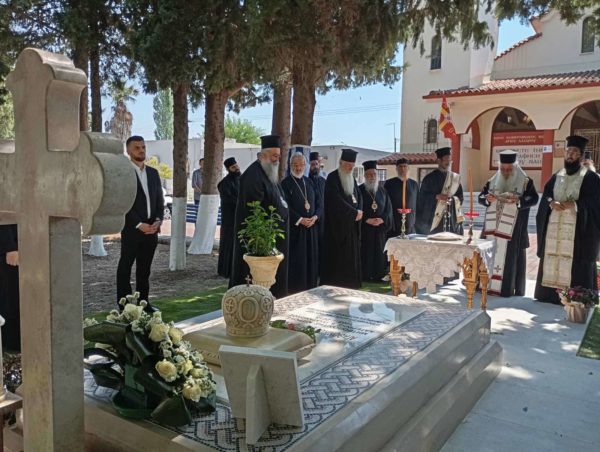 Στη συνέχεια τελέστηκε Αρχιερατικό Τρισάγιο στο Κοιμητήριο Αγίου Λαζάρου, όπου βρίσκεται ο τάφος του αείμνηστου Ιεράρχου κατόπιν προσωπικής του επιθυμίας, ιερουργούντος του Σεβασμιωτάτου Μητροπολίτου Θηβών κ. Γεωργίου και συμπροσευχομένων Αρχιερέων, Κληρικών και συγγενών.