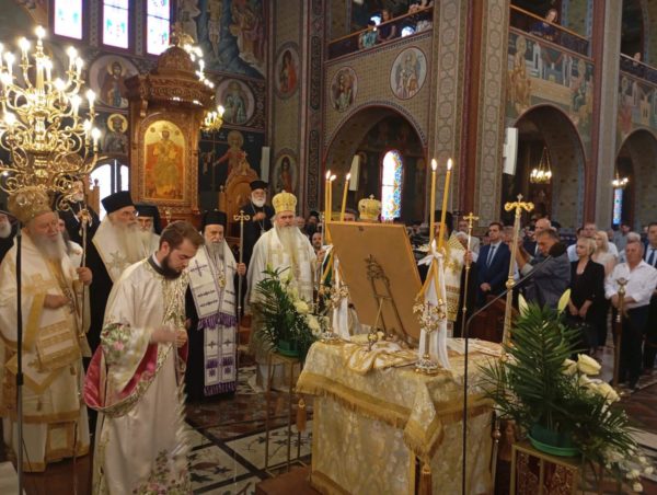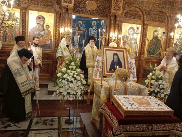 Ιερούργησαν ή συμπροσευχήθηκαν οι Σεβασμιώτατοι και Θεοφιλέστατοι Αρχιερείς Μιλήτου κ. Απόστολος, Γέρων Καισαρείας κ. Θεοφύλακτος, Ξάνθης και Περιθεωρίου κ. Παντελεήμων, Σιδηροκάστου κ. Μακάριος, Χαλκίδος, Ιστιαίας και Βορείων Σποράδων κ. Χρυσόστομος, Εδέσσης, Πέλλης και Αλμωπίας κ. Ιωήλ, Σερβίων και Κοζάνης κ. Παύλος, Μεσογαίας και Λαυρεωτικής κ. Νικόλαος, Θηβών, Λεβαδείας και Αυλίδος κ. Γεώργιος, Γρεβενών κ. Δαβίδ, Νέας Κρήνης και Καλαμαριάς κ. Ιουστίνος, Λαρίσης και Τυρνάβου κ. Ιερώνυμος, Αρούσας και Κεντρικής Τανζανίας κ. Αγαθόνικος, Σκοπέλου κ. Νικόδημος, Σαλώνων κ. Ιγνάτιος και ο οικείος Ποιμενάρχης κ. Γεώργιος.