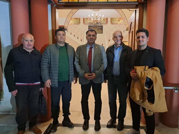Τον εορτάζοντα Μητροπολίτη Κίτρους, Κατερίνης και Πλαταμώνος κ. Γεώργιο επισκέφθηκε αντιπροσωπεία του Σωματείου Ιεροψαλτών Ν. Τρικάλων “Άγιος Ιωάννης ο Δαμασκηνός” αποτελούμενη από τον πρόεδρο Υποψ. Δρ. Αθανάσιο Δημητρίου, τον ταμία Ευθύμιο Σπύρου, τα μέλη Δημήτριο Μπαρλαφέζο και Κλεομένη Χολέβα καθώς και τον εκκλησιαστικό φωτογράφο Δημήτριο Καραγιάννη.