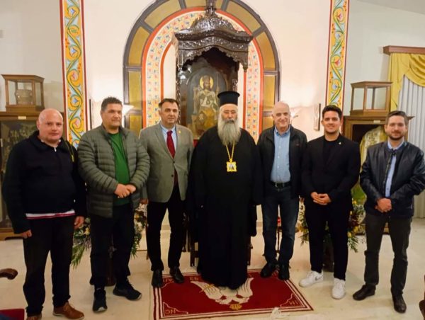 Τον εορτάζοντα Μητροπολίτη Κίτρους, Κατερίνης και Πλαταμώνος κ. Γεώργιο επισκέφθηκε αντιπροσωπεία του Σωματείου Ιεροψαλτών Ν. Τρικάλων “Άγιος Ιωάννης ο Δαμασκηνός” αποτελούμενη από τον πρόεδρο Υποψ. Δρ. Αθανάσιο Δημητρίου, τον ταμία Ευθύμιο Σπύρου, τα μέλη Δημήτριο Μπαρλαφέζο και Κλεομένη Χολέβα καθώς και τον εκκλησιαστικό φωτογράφο Δημήτριο Καραγιάννη.