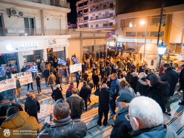 Πλήθος κόσμου κάθε ηλικίας κατέκλυσε από νωρίς τον Ιερό Καθεδρικό Ναό Θείας Αναλήψεως Κατερίνης για να παρακολουθήσει την ομιλία του Σεβασμιωτάτου Μητροπολίτη κ. Γεωργίου, ο οποίος ανέλυσε διεξοδικά τη θέση της Εκκλησίας και εξέφρασε την αντίθεσή του στο νομοσχέδιο, στη βάση των αποφάσεων της πρόσφατης συνεδρίασης της Ιεράς Συνόδου της Ιεραρχίας της Εκκλησίας της Ελλάδος.