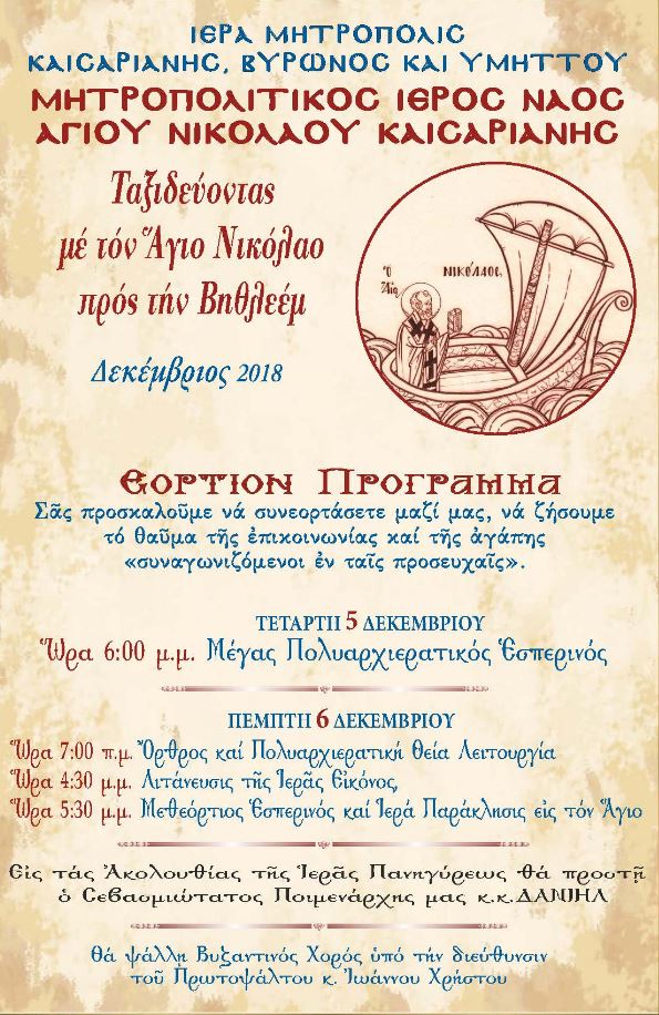“Εόρτιον Πρόγραμμα” Αγίου Νικολάου Καισαριανής