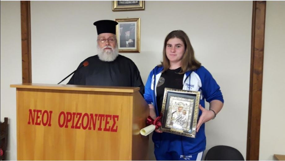 Ένα αξιοζήλευτο παράδειγμα προς μίμηση όλων των παραπάνω, όπως σημείωσε ο π. Χρήστος, είναι και η 17χρονη Γεωργία Καραφλού. «Η Γεωργία είναι μέλος πολύτεκνης και βαθιά θρησκευόμενης οικογένειας που μεγάλωσε τόσο την ίδια όσο και τα άλλα επτά αδέλφια της με ήθος, ευπρέπεια, ταπεινότητα και καλοσύνη. Μάλιστα, παρά τις πολύ μεγάλες επιτυχίες της σε πανελλήνιο, ευρωπαϊκό και παγκόσμιο επίπεδο, εξακολουθεί να είναι ένα παιδί με ήθος, ευγένεια, ταπεινοφροσύνη και ιδανικά. Έτσι, ο Σεβασμιώτατος Μητροπολίτης κ. Αμβρόσιος θέλησε να την συγχαρεί διότι ανέδειξε και δόξασε την πόλη μας και βεβαίως να της ευχηθεί και άλλες, ακόμα πιο υψηλές αθλητικές κατακτήσεις», είπε χαρακτηριστικά ο Αρχιερατικός Επίτροπος Αιγίου, που εκ μέρους τού Σεβασμιωτάτου επέδωσε στην Αιγιώτισσα αθλήτρια τιμητικό δίπλωμα και ως ευλογία μία εικόνα τής Πολιούχου της πόλεως, Παναγίας Τρυπητής.