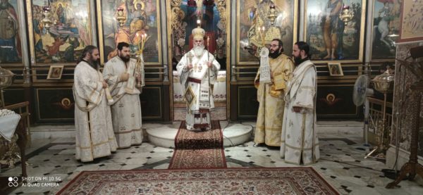 Στην Αρχιερατική Θεία Λειτουργία τον Σεβασμιώτατο πλαισίωνε χορεία των σεβασμίων συνταξιούχων κληρικών της αρχιερατικής περιφερείας Αιγιαλείας ενώ στο ιερό βήμα παρέστη συμπροσυεχόμενος ο Σεβασμιώτατος πρ. Καλαβρύτων και Αιγιαλείας, κ. Αμβρόσιος.