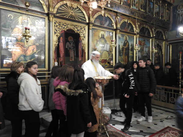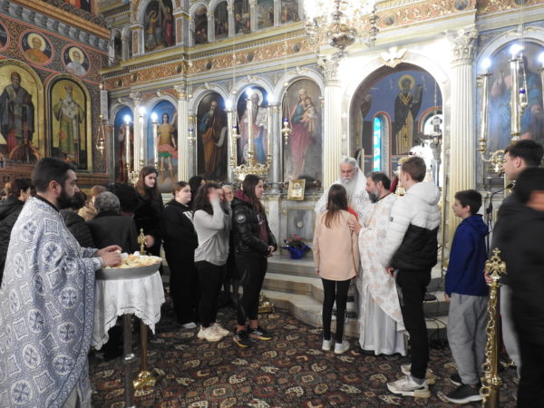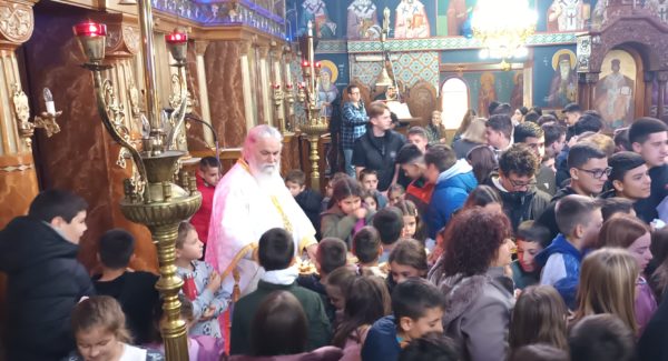Ο Σεβασμιώτατος μίλησε από καρδιάς στους μαθητές, προτρέποντάς τους πατρικά να έχουν εμπιστοσύνη στην Εκκλησία και πίστη στον Χριστό. Κάλεσε τους νέους να αποτελέσουν πνευματικό φάρο, αλλά και φωτεινή πυξίδα, που θα μαρτυρεί τον Χριστό και θα καταδεικνύει το μεγαλείο της πίστεώς μας. Να μετέχουν ενεργά στα Ιερά Μυστήρια της Εκκλησίας μας και ιδιαίτερα στα Μυστήρια της Ιεράς Εξομολογήσεως και της Θείας Ευχαριστίας, μέσω της οποίας λαμβάνουμε και γευόμεθα το Σώμα και το Αίμα του Κυρίου, γινόμαστε ένα, Χριστοποιούμεθα, ενωνόμαστε με τον Χριστό, αλλά και μεταξύ μας. Να μην ξεχνούν ότι θα έχουν τον Χριστό φίλο και συνοδοιπόρο στη ζωή τους. Και πρόσθεσε: «Σας αγαπά και σας εμπιστεύεται. Θέλω να σας παρακαλέσω και εσείς να Τον αγαπήσετε και να Τον εμπιστευθείτε. Δεν είναι ένα πρόσωπο απομακρυσμένο και ξένο. Είναι το πλέον οικείο και δικό σας πρόσωπο. Είναι Εκείνος που έχει μόνο αγάπη για εσάς και στα δύσκολα, αν προσευχηθείτε σε Εκείνον, θα σας δείξει τι είναι η πραγματική ζωή, ποια είναι η αληθινή χαρά, τι σημαίνει να αγαπώ τον συνάνθρωπό μου».