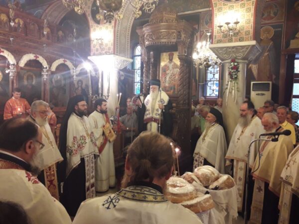 Κατά τον Μέγα Εσπερινό που τελέστηκε χθες το απόγευμα χοροστάτησε ο Σεβασμιώτατος Μητροπολίτης μας κ. Αμβρόσιος, πλαισιωμένος από κληρικούς τής καθ’ ημάς Ιεράς Μητροπόλεως και μεγάλο πλήθος πιστών.