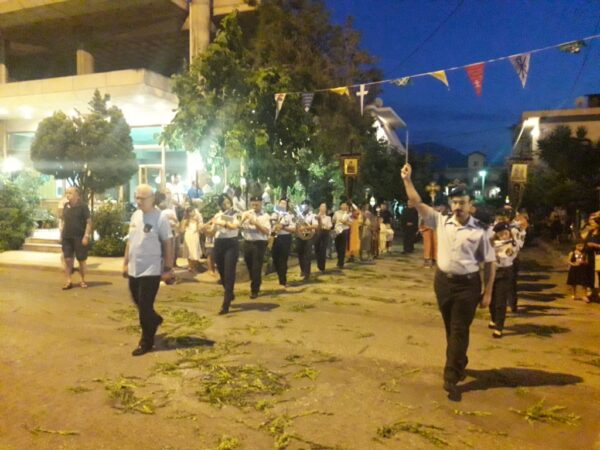 Αμέσως μετά ακολούθησε η περιφορά της Ιεράς Εικόνος της Αγίας Άννης στους δρόμους του Συνοικισμού, υπό τον παιανισμό της Φιλαρμονικής Αιγίου.