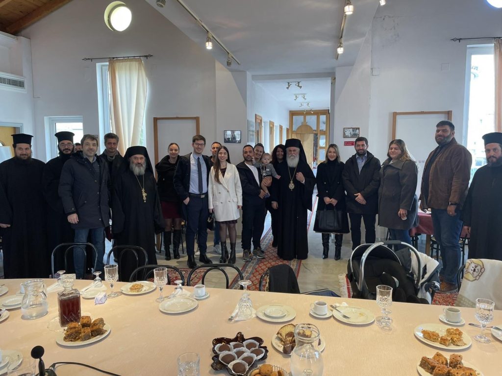 Τέλος, ο Μητροπολίτης, ανανεώνοντας τη συνάντηση μαζί τους, τους πρόσφερε ως ευλογία ένα πνευματικό βιβλίο περί συζυγίας και το ημερολόγιο