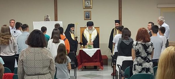 Ο Σεβασμιώτατος προέστη της ακολουθίας του Αγιασμού και ευλόγησε τους μαθητές και διδασκάλους της Σχολής ευχόμενος καλή κι ευλογημένη εκκλησιαστική χρονιά με υγεία και θεία ενδυνάμωση.